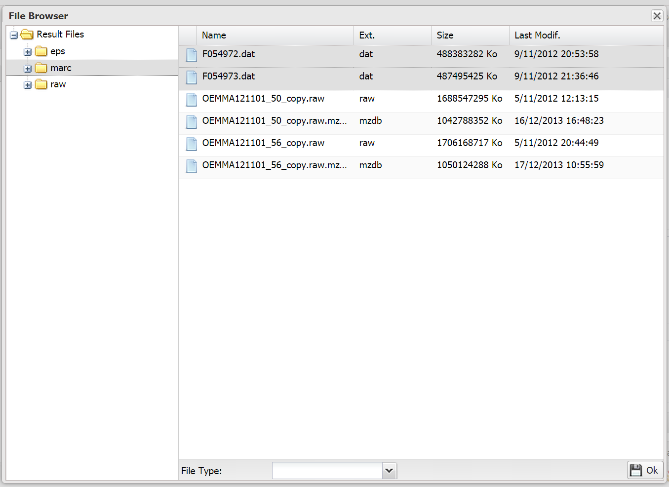 The left side let you browse the directories, and when you click on one of them, its content is shown on the main panel. Choose one or multiple files then click “Ok”.
