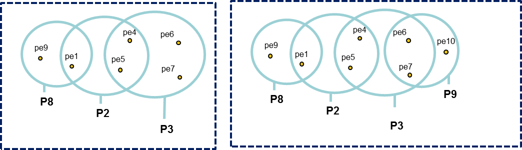 All Peptides Sets and associated ProteinSets are represented, even if there are no specific peptides. In both cases of above example, no choice is done on which ProteinSet / PeptideSet to keep. These ProteinSets could be filtered after inference (see Protein sets filtering).